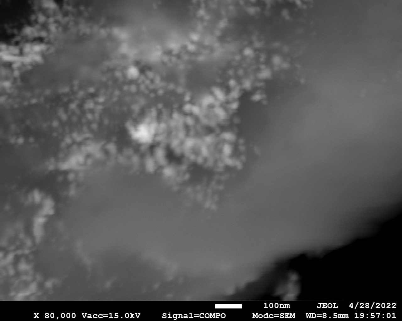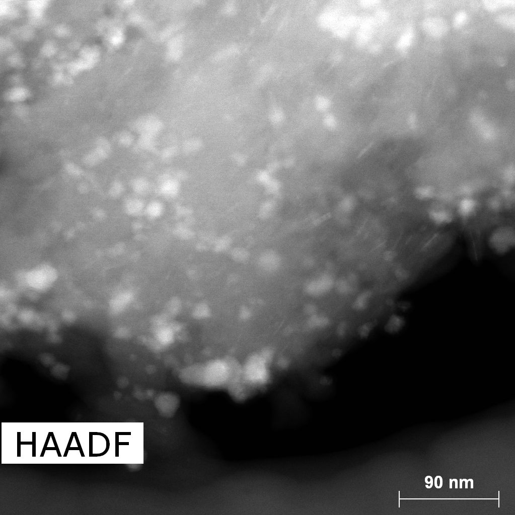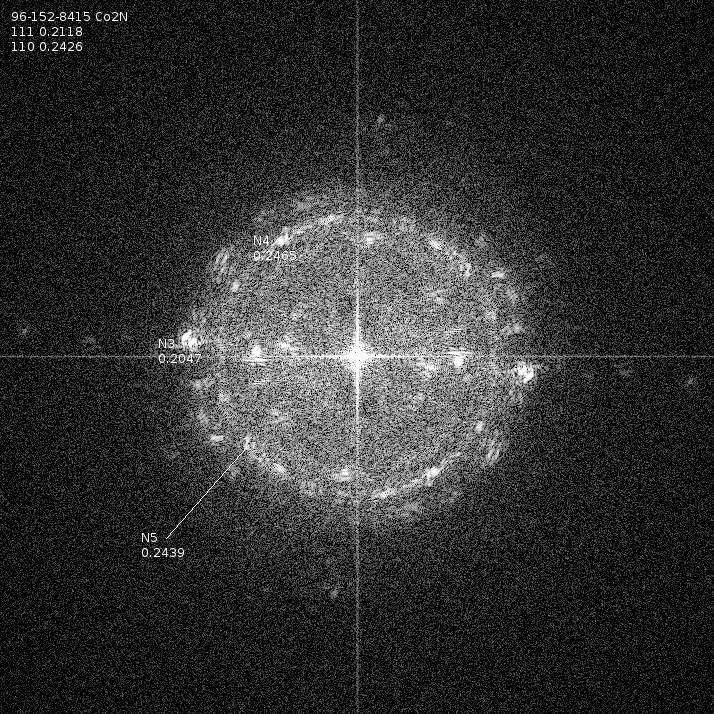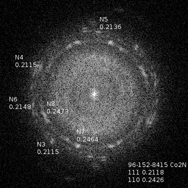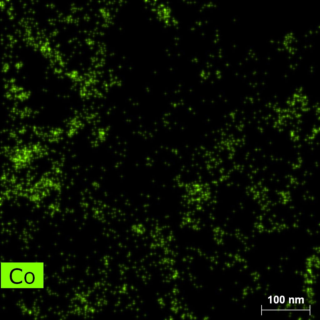 Cobalt nitride particles are smaller compared to Fe-N counterpart. Particles tend to concentrate in islands. There is no noticeable difference between BN and BCN supported particles.