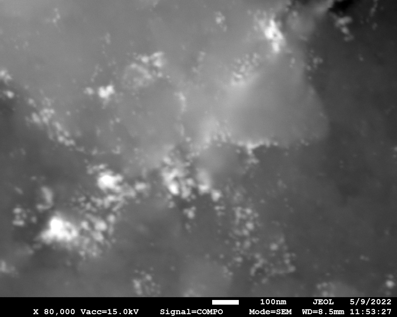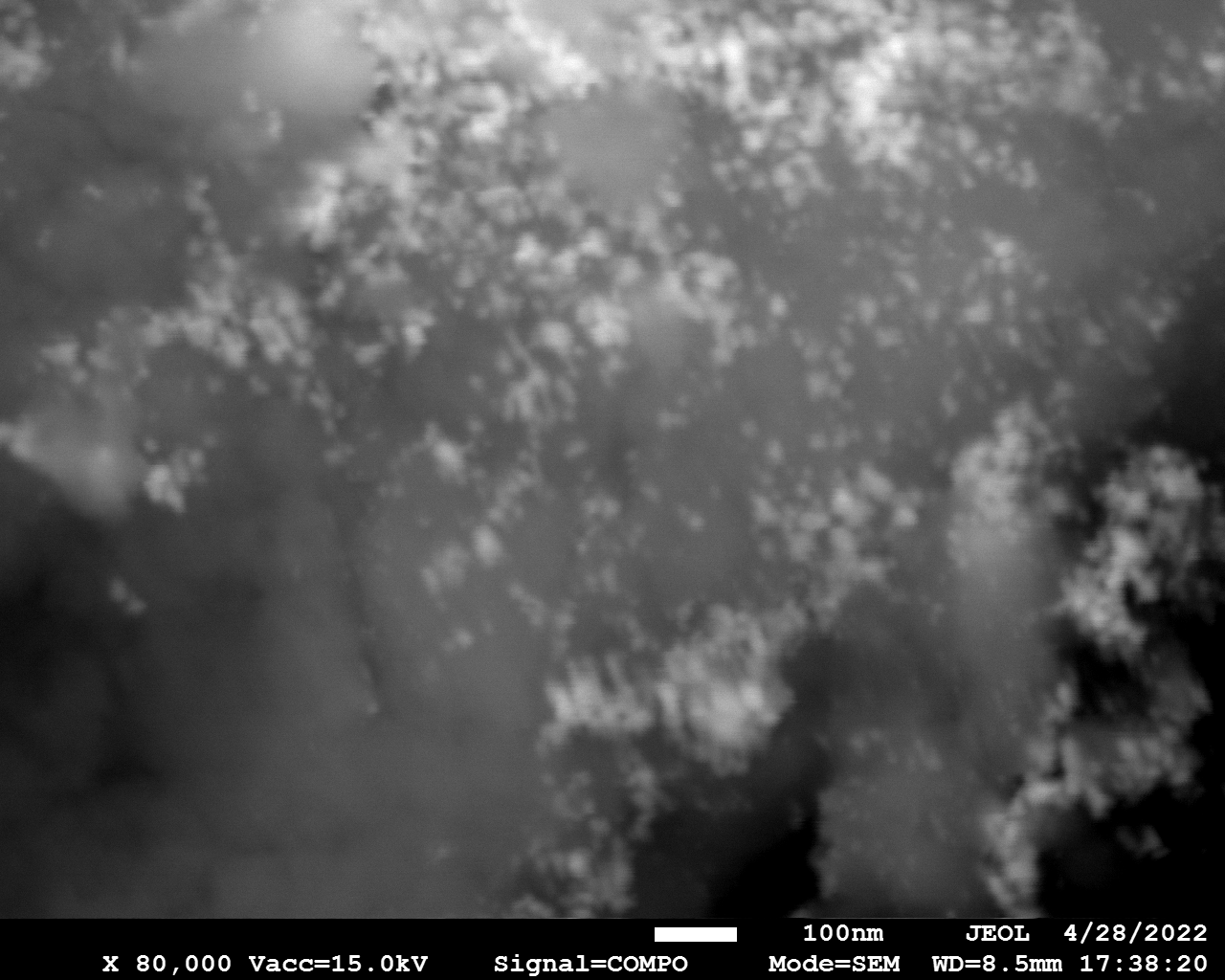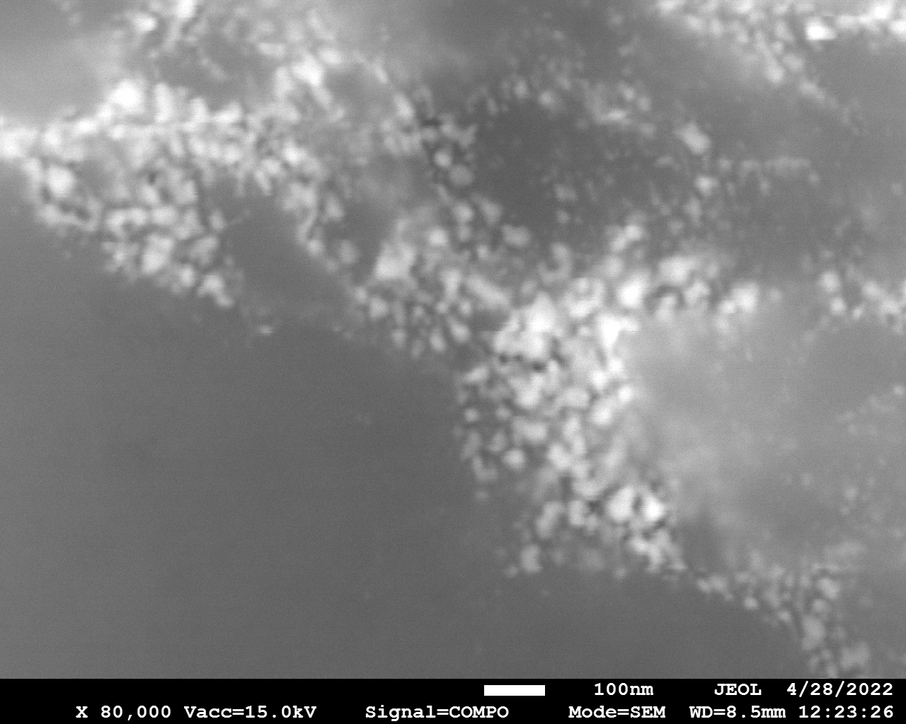 Cobalt nitride particles are smaller compared to Fe-N counterpart. Particles tend to concentrate in islands. There is no noticeable difference between BN and BCN supported particles.