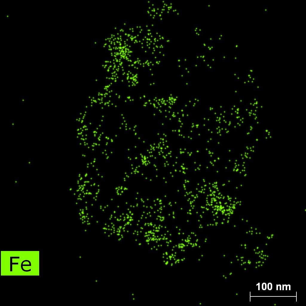 Samples contain B, N, Fe, O elements and up to 0.5 at.% Si impurity. There are homogeniously formed iron nitride particles in sample on BN without ball-milling treatment. In case of ball-milled samples, iron is distributed uniformly among particles.