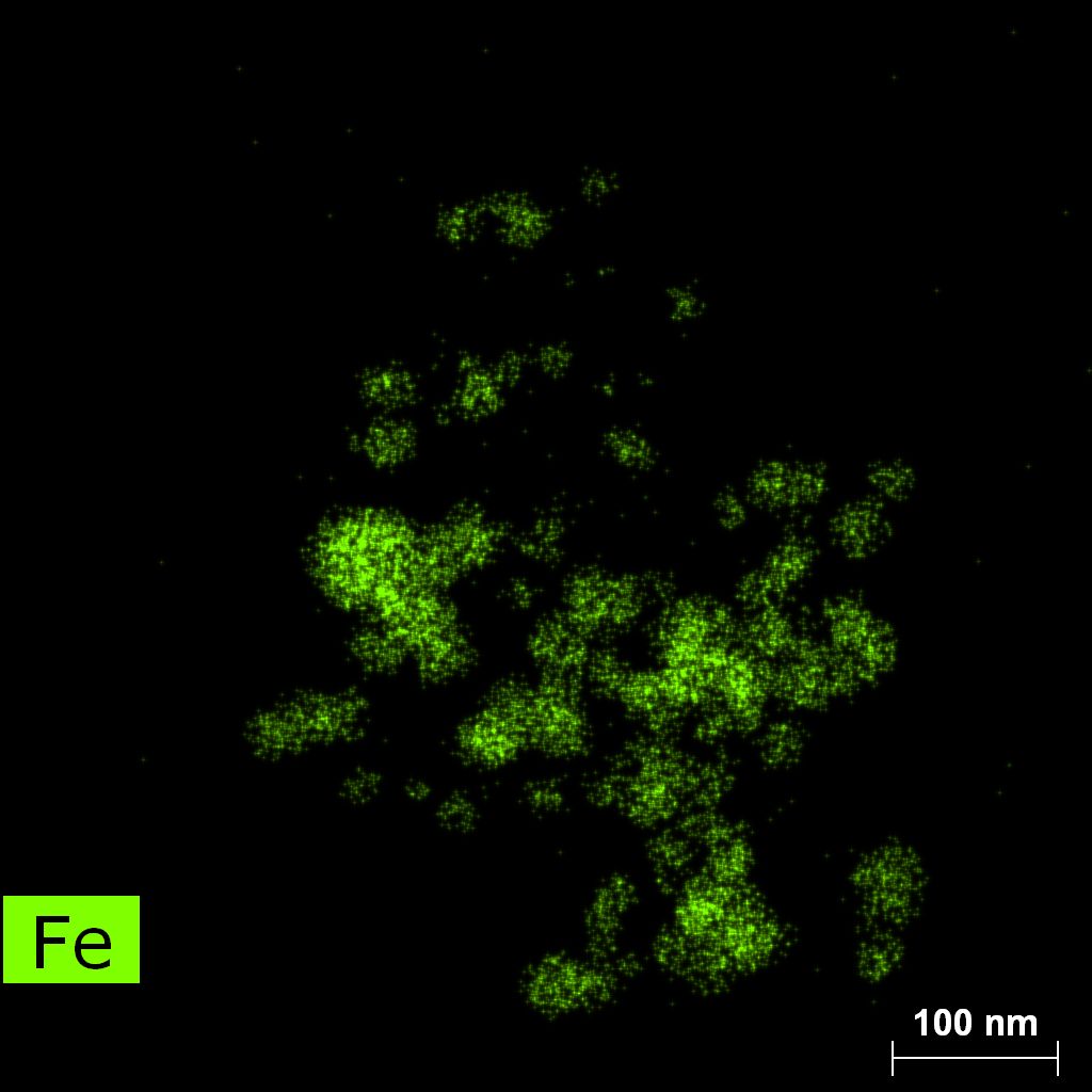 Samples were produced via Fe hydroxide chemical precipitation. Boron nitride powder was dispersed in acidified iron nitrate solution using ultrasound at 5°C. NaOH water solution was added to the suspension dropwise at 5°C at vigorous stirring using magnetic mixer. After deposition, samples were washed with water and dried in IPA at ambient conditions. Nitrides were obtained via ammonolysis in ammonia flow at 500°C.