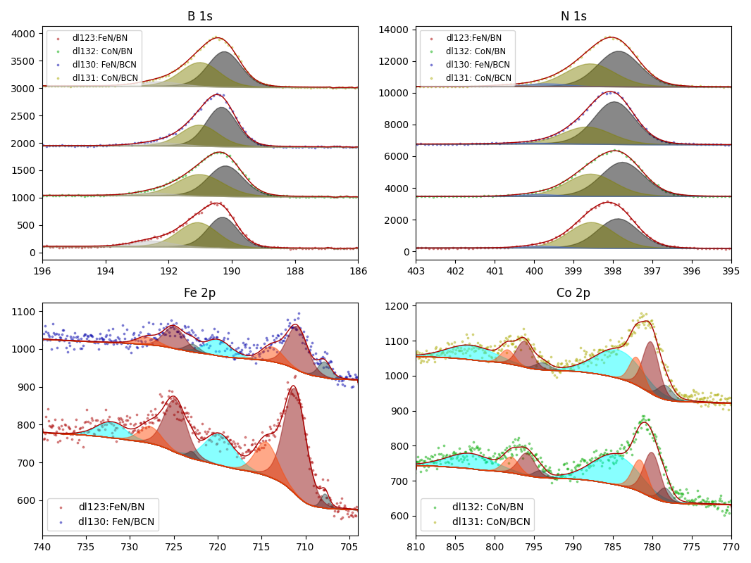 | Sample | B 1s | N 1s | Fe 2p | Co 2p | |||||||||